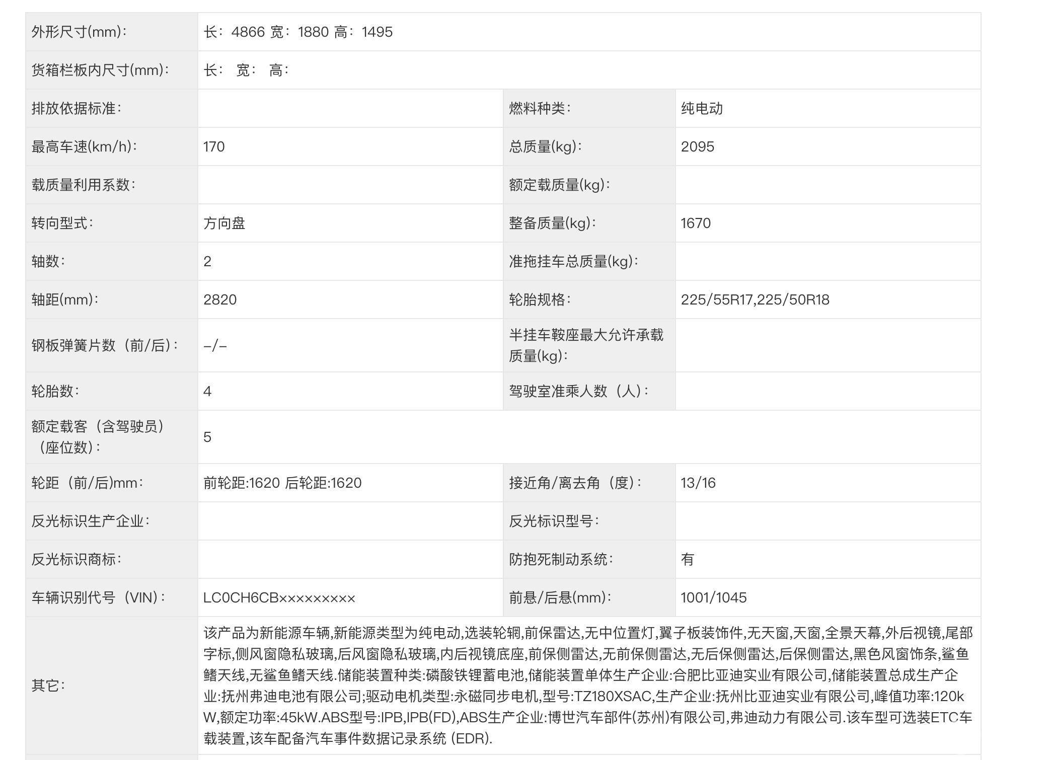 秦MAX会比秦L再大一点,车长多出14.6厘米,来到4866mm;车宽高和轴距则与秦L一致。动力是纯电形式,搭载单电机系统,低功率最大功率为120千瓦,高功率为240千瓦,数据方面超越秦L EV。