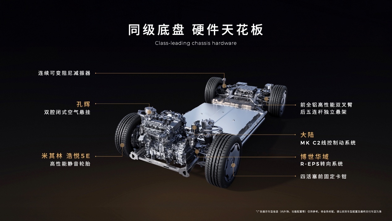 驾控层面,D19标配双腔闭式空悬和连续可变阻尼减振,支持主动预瞄魔毯功能,可实时扫描路面并调整悬架状态。D19 针对SUV的运动属性,搭载三电机四驱系统,零百加速进入3秒级,全系标配前置四活塞卡钳,大陆MK C2线控制动将这台大尺寸SUV最短制动距离做到了35米级,配合LMC2.0底盘融合控制,支持双轮爆胎稳定控制、圆规掉头等功能;D99侧重MPV的舒适性与稳定性,会优化整车底盘调校,主打平顺和静谧性。