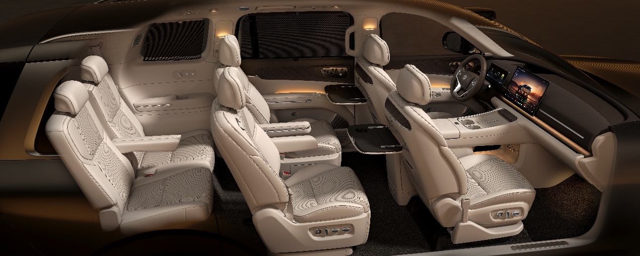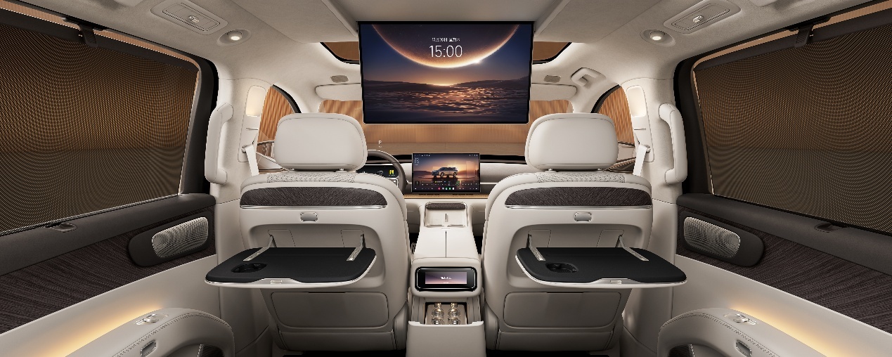 大空间使得每一排都能提供充裕的乘坐空间。六座二排零重力座椅支持120°零压躺姿和四向腿托,集成ABTS一体式安全带;三排配备双扶手、加热功能与131°无级可调靠背。