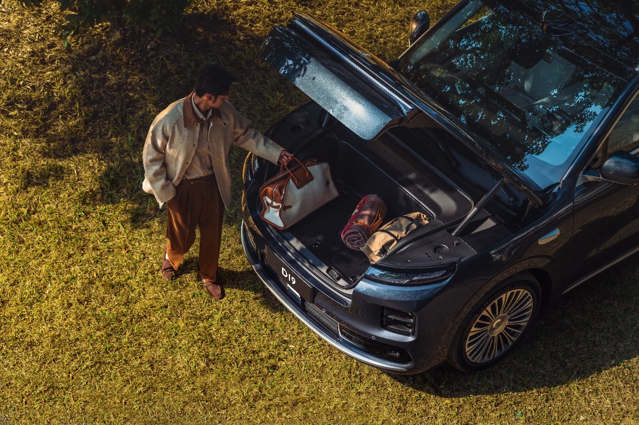 全车拥有50 处储物空间,得益于驱动发电一体机的存在,D19拥有容积达176L的电动前备舱,并支持220V电源输出与防泼可冲洗设计。