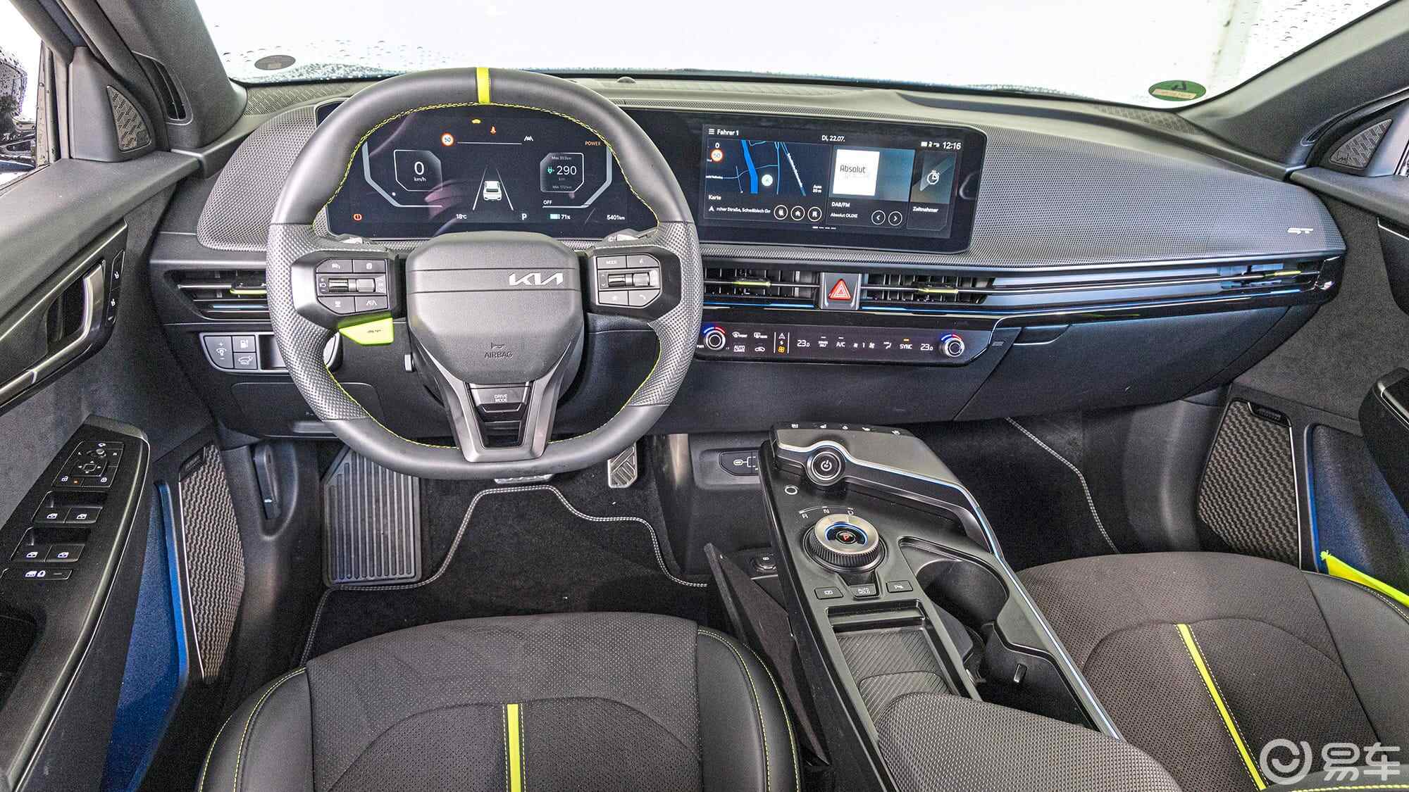一旦适应了EV6 GT电动车特有的偏高坐姿,驾驶者可以轻松俯瞰极短的发动机舱盖,而悬浮式中控台则让人有种“漂浮感”。一体式运动座椅包裹性极佳,但缺少腰部支撑。操作方面,除中央触控条需兼顾空调与信息娱乐外,其余实体按键丰富,几乎无可挑剔。
