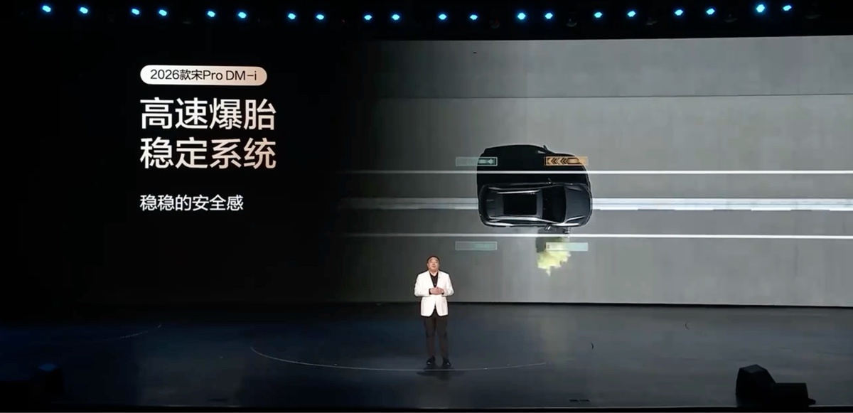 同时,2026款宋Pro DM-i新增了高速爆胎稳定控制系统。它能在车辆高速行驶突发爆胎的危急瞬间,实现毫秒级响应,通过对驱动轮和制动系统的协同控制,有效抑制车辆跑偏与失控,将车辆稳定地减速至安全状态。