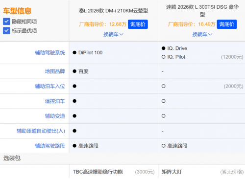 综上所述,秦L DM-i的优势在于全能适配家用的需求与场景,动力、路况适应性、通勤经济性、长途续航,以及智能、安全均表现出色,单身青年、年轻夫妻、三口之家都能获得出色的用车体验;速腾L作为燃油车“常青树”,成熟稳定的品质与深厚品牌口碑,适合偏爱传统燃油车且用车场景以城市及中短途出行为主的用户。