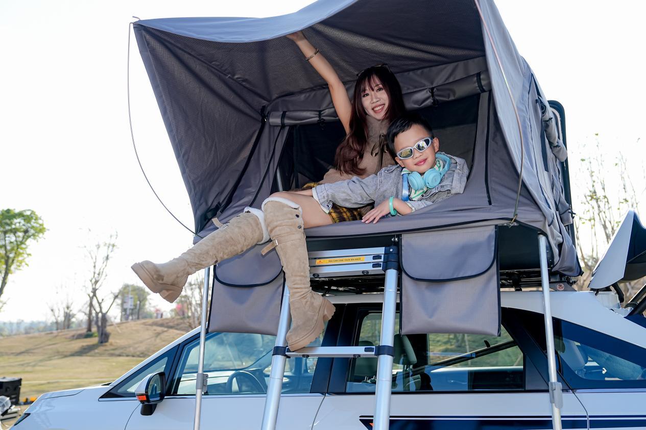 车内座椅放平后形成2.5米纯平大床,与车顶帐篷构成“双层休憩空间”,满足4—5人露营住车的实际需求。遮阳帘、内置充电口等细节配置,也进一步提升了整体使用便利性与舒适性。值得关注的是,该改装方案在不影响整车原有性能的前提下完成升级,实现真正意义上的“无损改装”。
