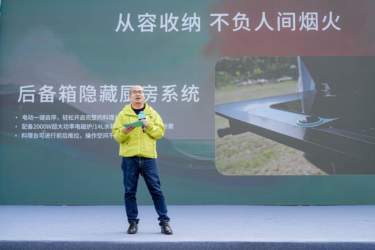 车辆还配备3.3千瓦对外放电功能,无需外接电源即可驱动厨房系统满负荷运行,实现“一车供电,三桌同享美食”的露营体验。食材、厨具与生活用品收纳有序,也让户外生活从容不凌乱。