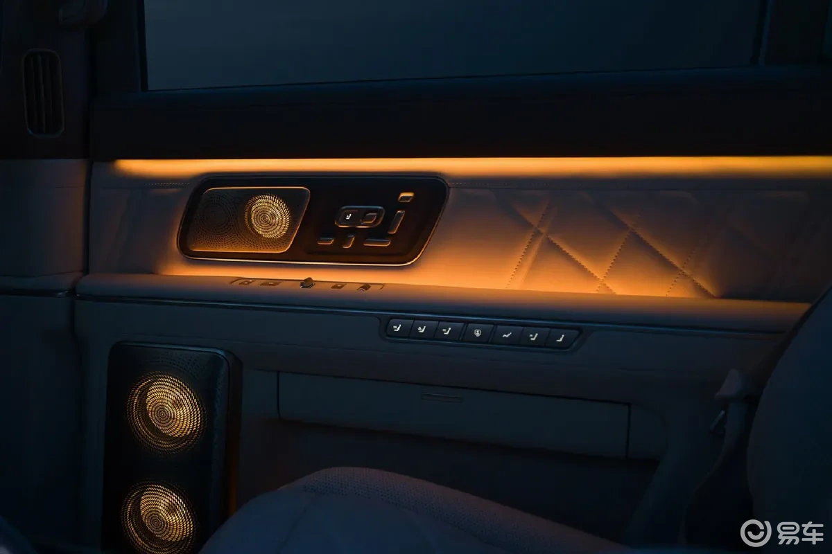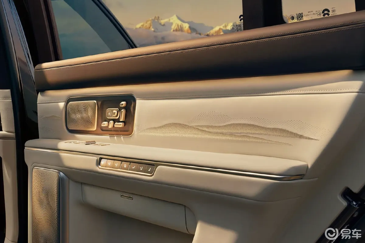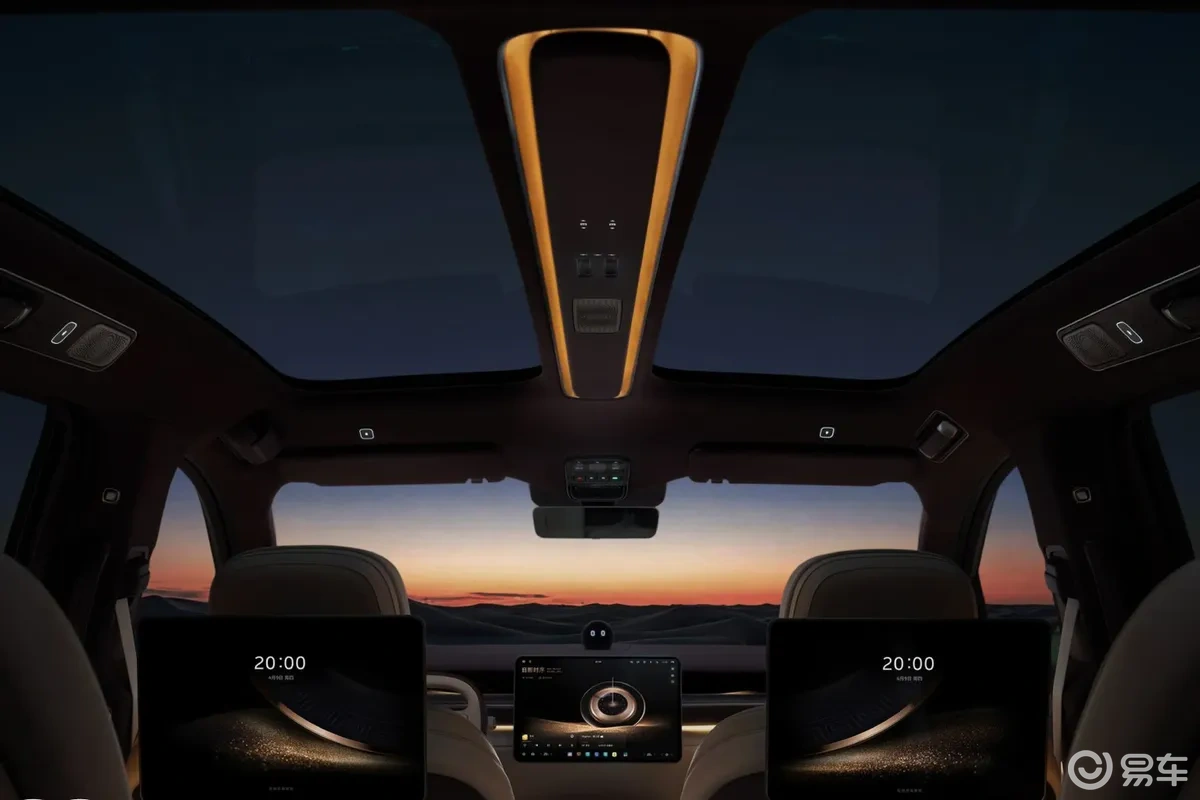 二排座椅中央配备专属控制屏,右侧门板设置多项功能实体按键,涵盖座椅调节、通风、加热、按摩、记忆等功能,实体按键相比触控屏更适合盲操作,实用性更强,也契合大型SUV对豪华舒适性的定位。车顶天幕采用左右分区式设计,中央集成功能按键,既能保证全景采光,又能实现单独遮光,细节设计更贴合日常用车需求。