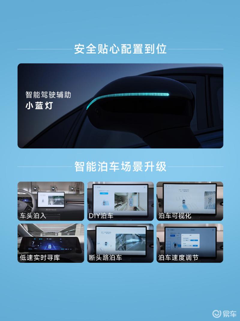 内饰方面,新车新增了星夜紫内饰配色,搭载双色方向盘以及隐藏式空调出风口。中控台上,新车搭载8.88英寸液晶仪表屏以及15.6英寸2.5K中控大屏,并新增无线Carplay。升级手车互联功能,无需动手,实现全量APP语音调度,操作更便捷。前排座椅集成加热、通风、八点按摩与记忆调节功能,并全新升级小憩模式。