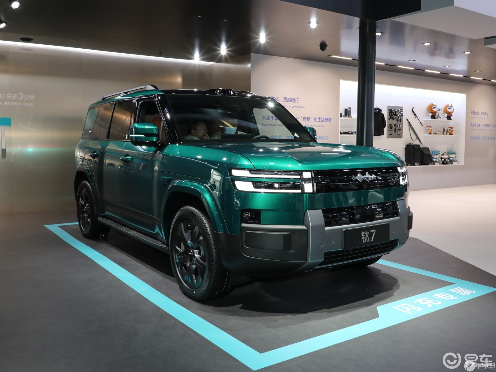 钛7 EV闪充版是方程豹钛系列的第二款纯电闪充车型,定位中大型五座硬派SUV,车身尺寸为4999/1995/1865mm,轴距达2920mm。外观方面,新车作为纯电版车型整体与插混版差别不大,继续沿用了硬派的方盒子造型设计。采用封闭式前格栅搭配贯穿式分体大灯,并首次配备电动开合的超大前备箱。侧面来看,新车采用全新样式的轮圈造型,并配备常规造型的车门把手。车尾方面,新车采用双L型尾灯组,尾部的小书包自然也不会遗漏的。