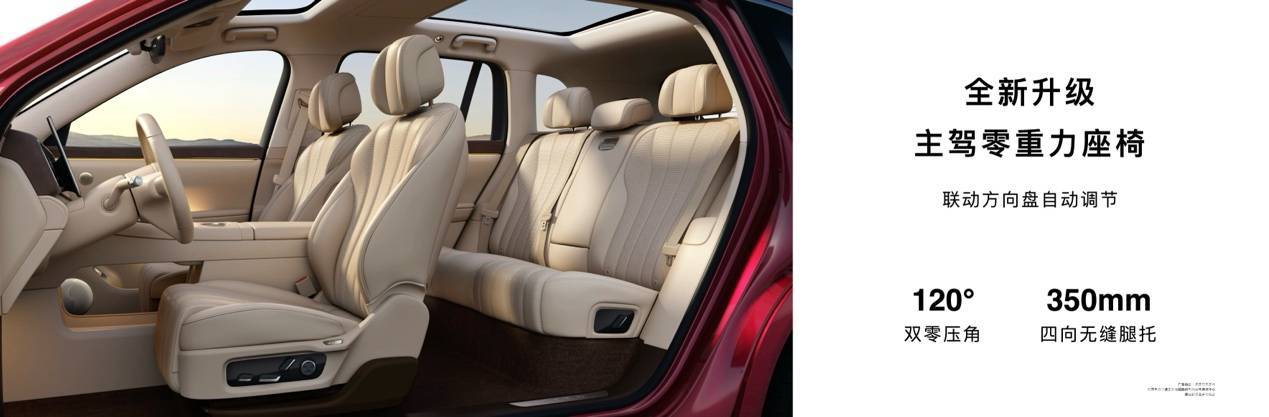 内饰采用对称式布局设计,配备16.1英寸3K悬浮中控屏搭配26英寸WHUD,更有68英寸AR-HUD,行车信息一目了然。副驾升级10.25英寸娱乐屏,并新增17.3英寸后排娱乐屏,新增组队出行与开门守卫功能,全家出行途中共享欢乐时光。