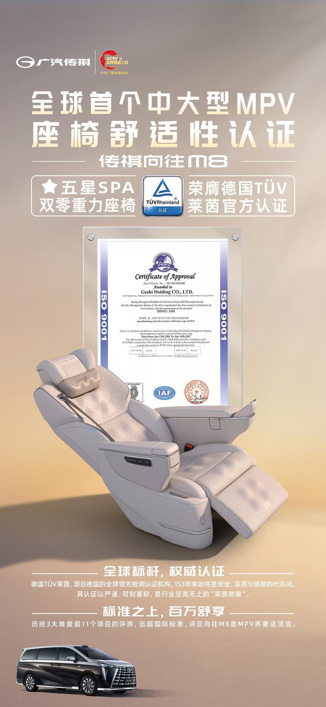 星级按摩搭配7大部位270度环抱加热,以及同级唯一的石墨烯加热颈枕,无论通勤或远行,传祺向往M8乾崑随时随地都能给用户带来一场从头到脚、由外至内的舒压SPA。所言非虚,这套座椅凭借奢适体验不久前就获得了德国莱茵TüV权威认证,以远超国际标准的成绩,成为全球首个中大型MPV座椅舒适性标杆。