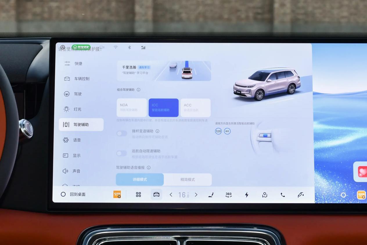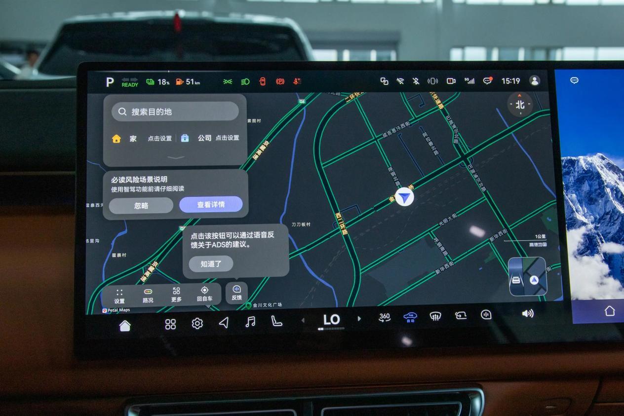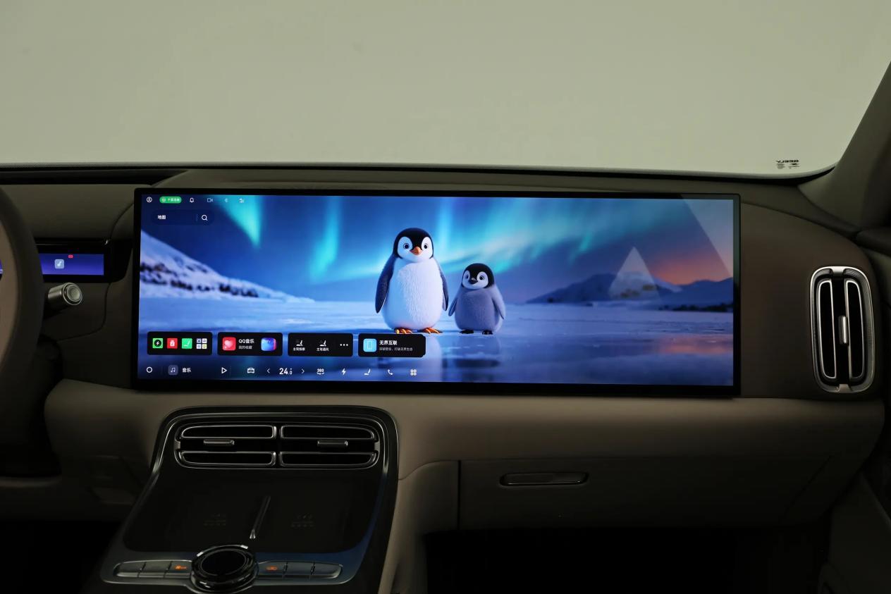 银河M9的内饰走的是简约、科技路线,三辐式皮质方向盘,附带对北方用户友好的加热功能,搭配电子式怀挡,操控十分方便。前方的12.66英寸仪表盘,采用全液晶屏幕,配合32英寸的AR-HUD增强现实抬头显示系统,各种路况数据都能一眼观瞻。30英寸的中控屏,内置高通骁龙8295芯片,分辨率有6K,除了有高清的画面,还支持4G网络、手机互联映射、语音识别等功能。
