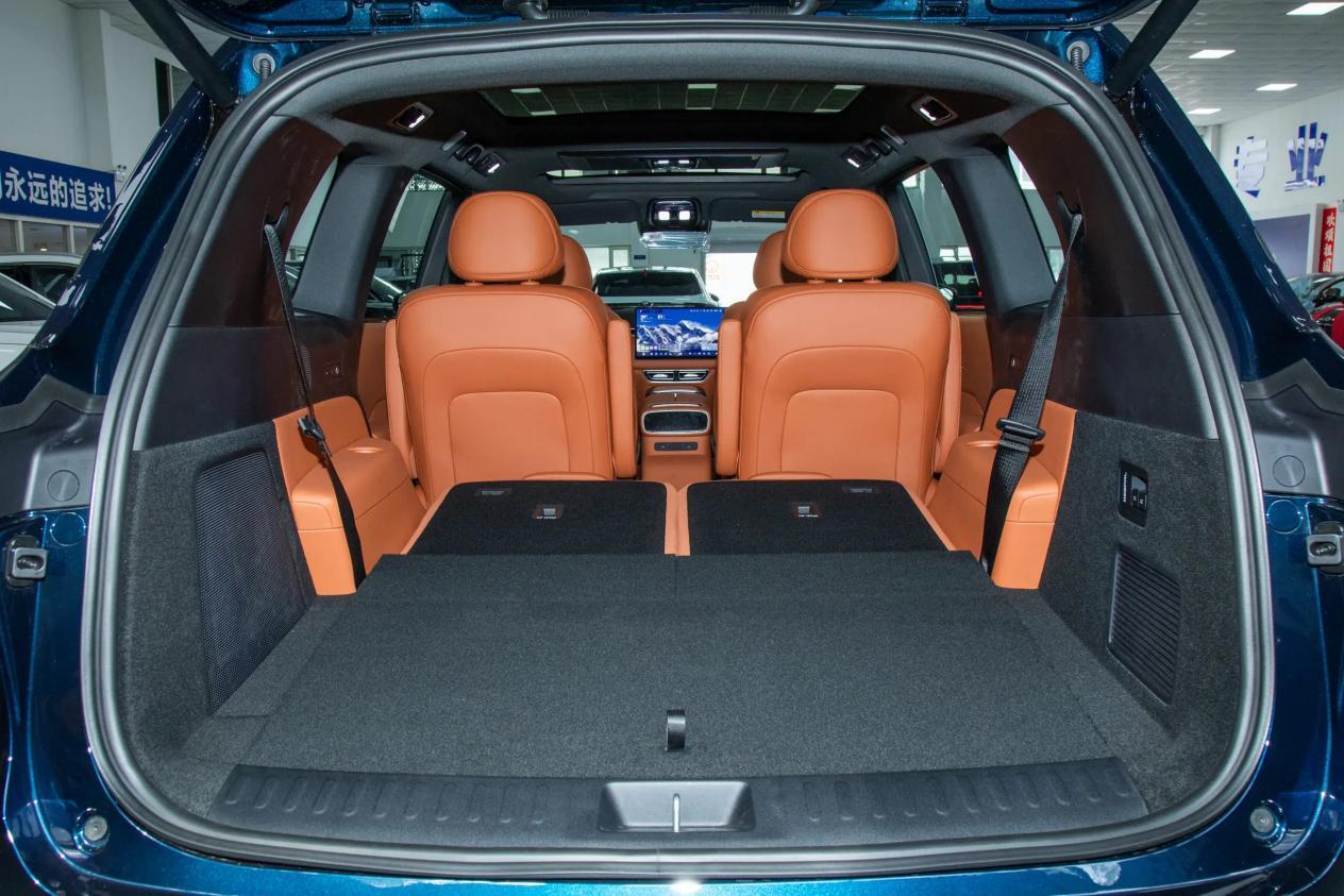 银河M9的长宽高三围分别是5205/1999/1800mm,轴距为3030mm,定位于中大型SUV,车尾带328L的后备厢,支持拓展到2171L。车内配备的是真皮座椅,采用2+2+2布局,三排座椅均支持基本的电动调节功能和加热功能,二排座椅多了加热、通风、按摩等功能,前排座椅又增加了记忆功能和放平功能。