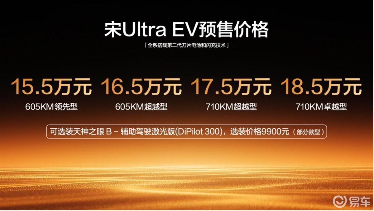 另外除了续航到位之外,宋Ultra EV还可选装激光雷达,整车搭载27个传感器,天神之眼5.0加持,辅助驾驶前行,丝滑行驶,各种科技Buff叠满。