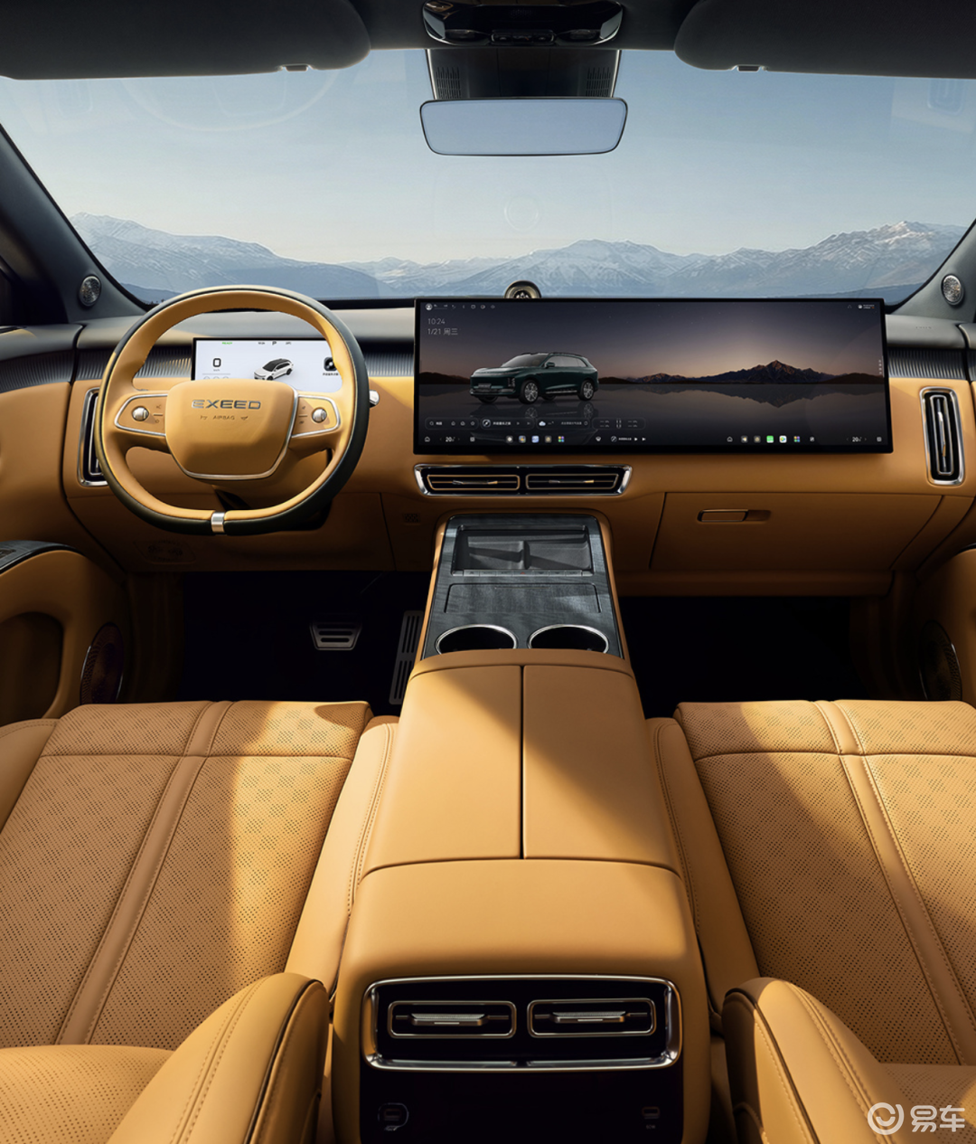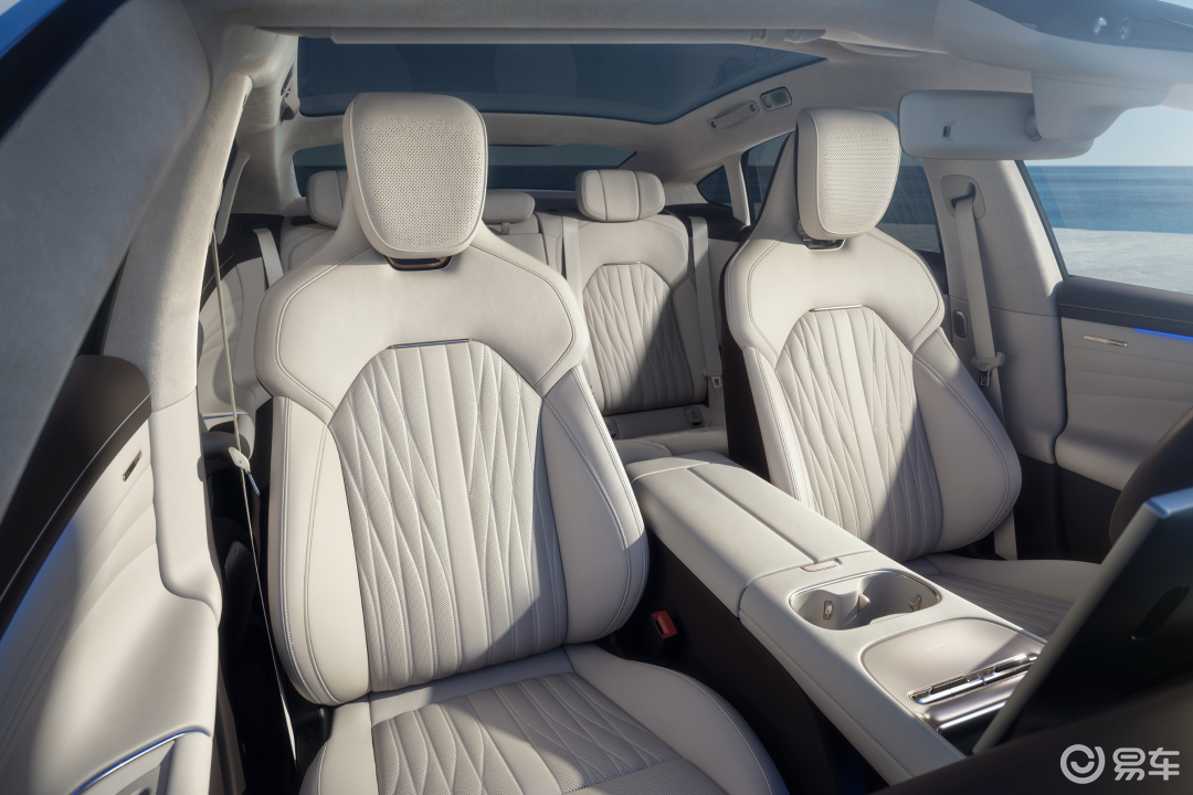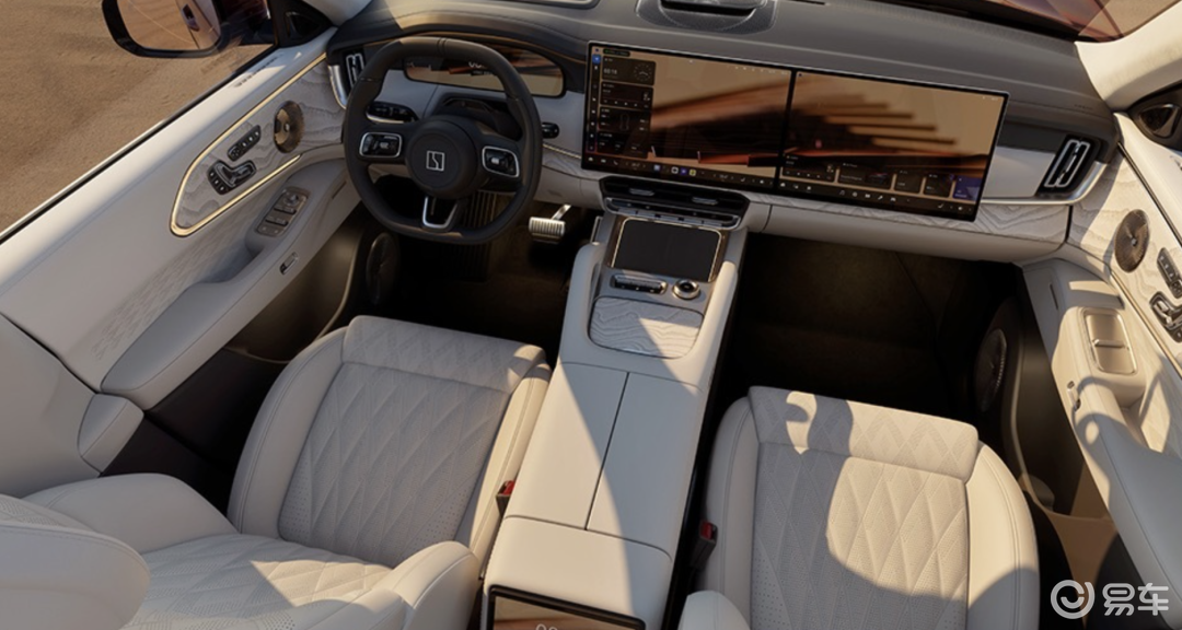 它和与众08一样用上了类似的联屏设计,不过尺寸进一步升级,前排中控与副驾屏幕达到了15.6英寸;后排则新增了一块21.4英寸的吸顶大屏,也算是集齐了“冰箱彩电大沙发”。