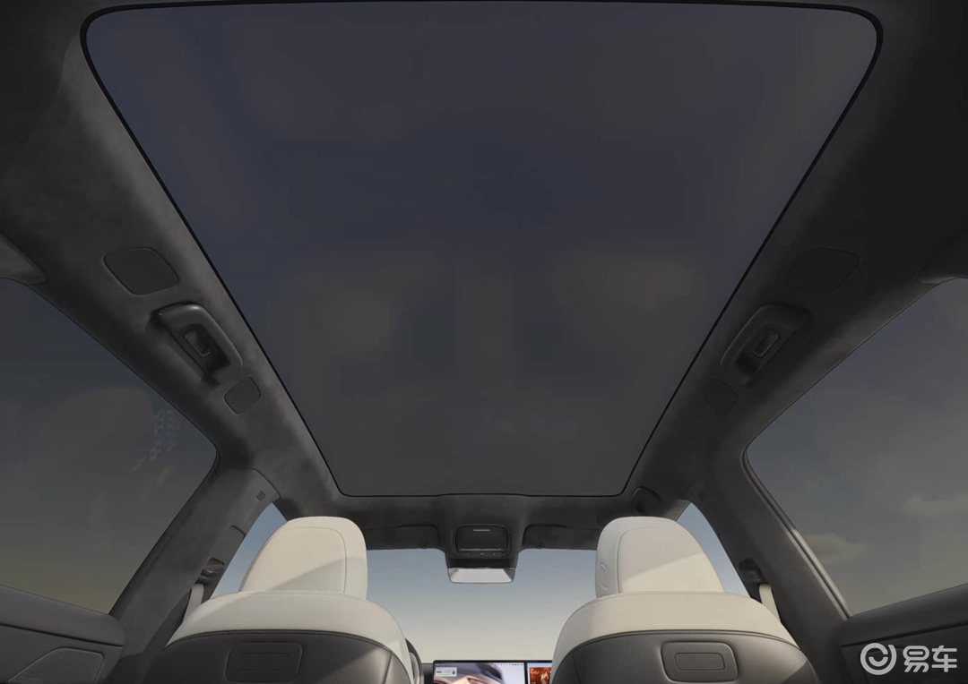 在车顶,新车使用了翻毛皮材质进行包裹,并配备全景天幕,同时支持智能调光功能,也算是满足了现在大家最关注的防晒。