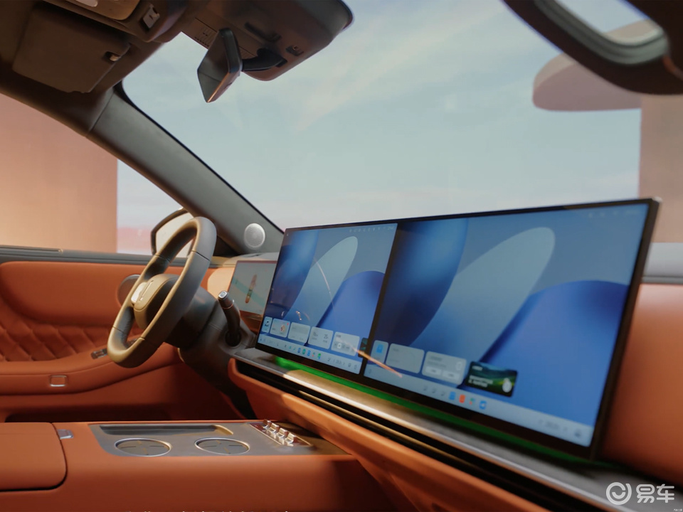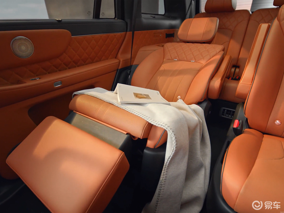 内饰设计在延续家族风格的基础上,将豪华感提升到了新的高度。新车配备了悬浮式全液晶仪表盘以及一块从中控延伸至副驾的一体式大联屏,并搭载AR-HUD抬头显示和流媒体内后视镜,科技感十足。用怀挡式换挡机构,为副仪表台腾出了更多空间,用以布置实体按键、杯架以及手机无线充电面板。座椅和门侧饰板大面积使用带有菱形缝线的真皮包裹,营造出温暖而高级的座舱氛围。车内为2+2+2座椅布局,第二排配备了带腿托的零重力独立座椅,并提供吸顶娱乐屏、后排小桌板以及门板位置的手机无线充电区域,舒适性与便利性考虑周到。