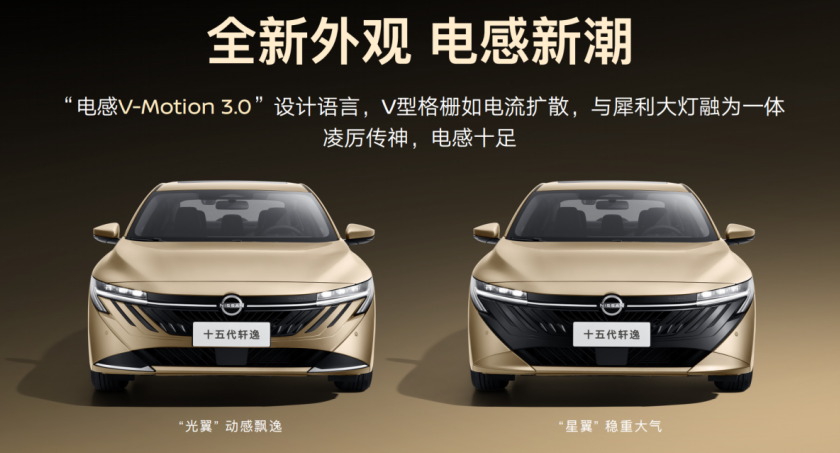 十五代轩逸采用全新电感V-Motion3.0设计语言,V型格栅与犀利大灯融为一体,凌厉传神。同时,新车提供“光翼”与“星翼”双前脸,前者动感飘逸,后者稳重大气,搭配“萤石金”“炽岩红”等五种高级车色,满足多元审美。宽体低趴车身搭配流畅溜背线条,尾部贯穿式灯组点亮后辨识度拉满,科技感与优雅感兼具。