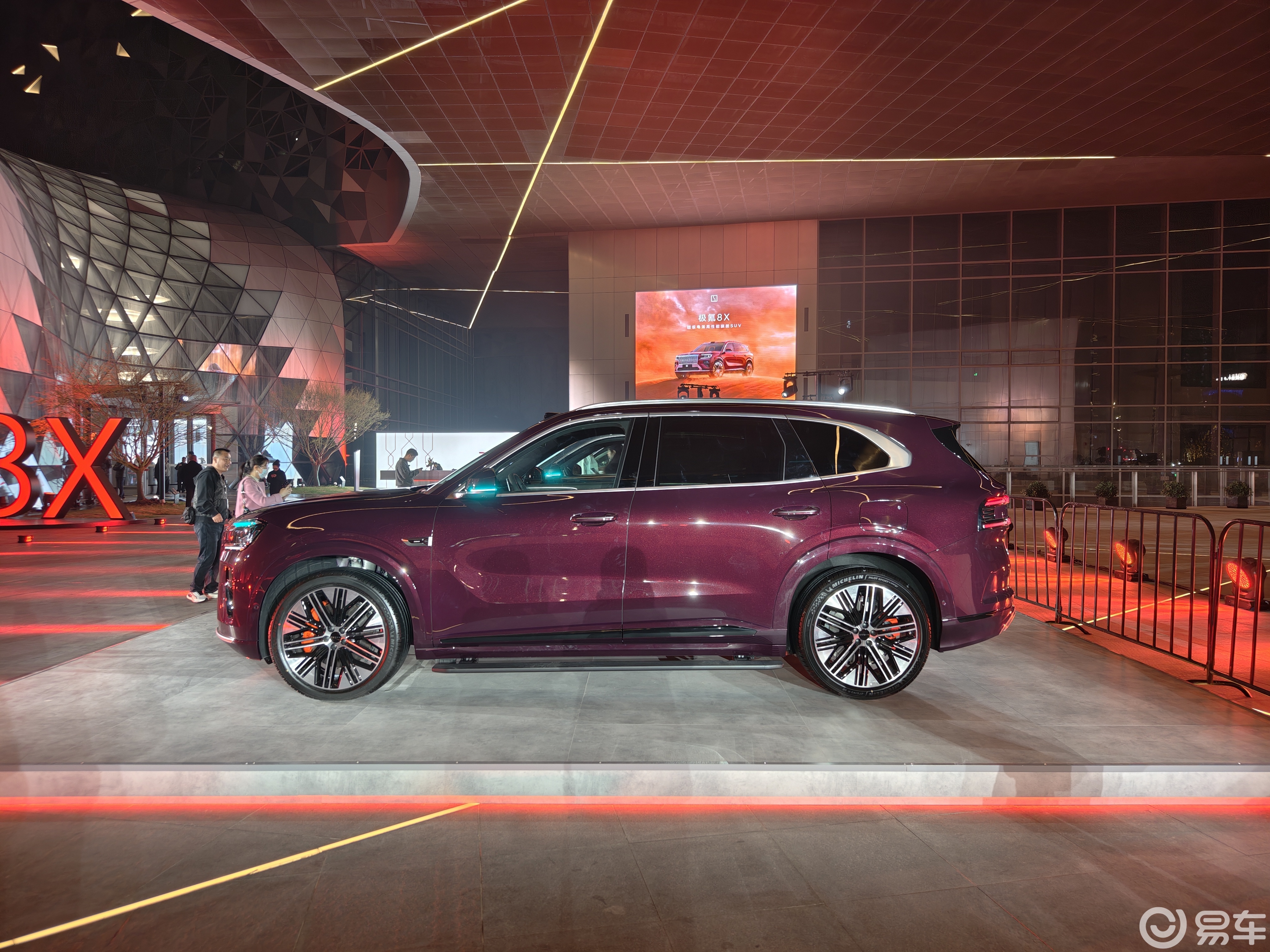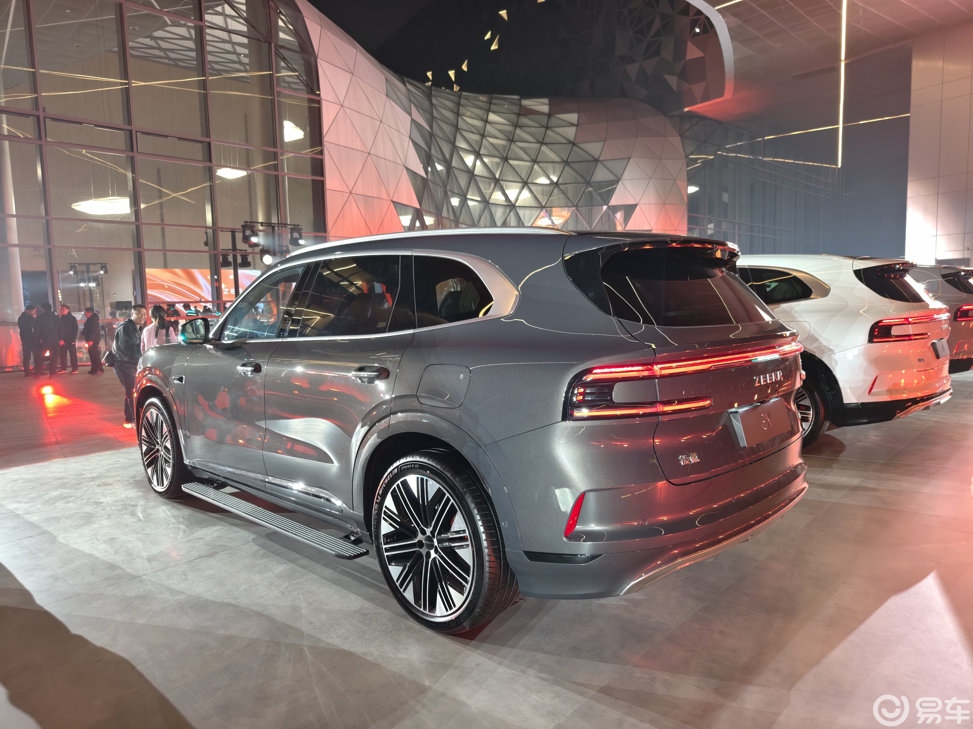 外观方面,极氪8X延续了品牌家族化的设计语言,前脸采用大尺寸直瀑式镀铬格栅,搭配分体式车灯与车顶激光雷达,整体风格兼顾了科技感与旗舰车型的稳重感。
