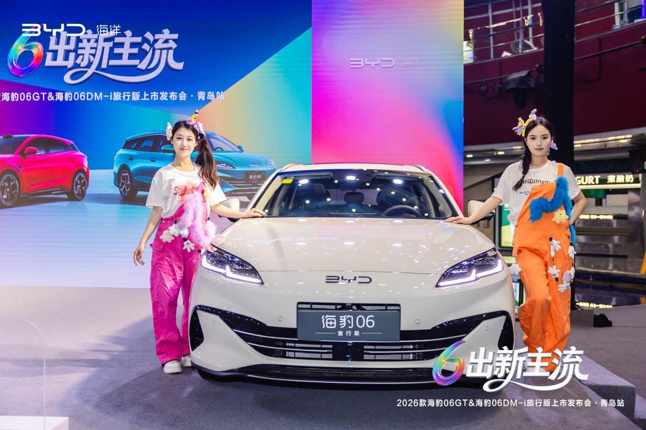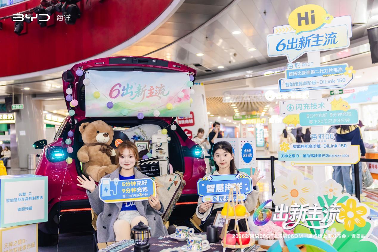 随后,隆重的交付仪式温情举行。比亚迪海洋网领导为青岛地区首批2026款海豹06GT及海豹06DM-i旅行版车主献上鲜花与交车礼盒,祝贺他们开启崭新的电动出行生活。全体嘉宾与车主一同登台,集体合影留念,记录下这一美好时刻。相机快门声中,“6出新主流”的口号响彻全场。仪式结束后,主持人宣布进入自由品鉴时间。嘉宾们近距离感受新车的内饰工艺、智能座舱以及精心布置的尾箱空间,现场工作人员全程提供专业讲解与咨询服务。