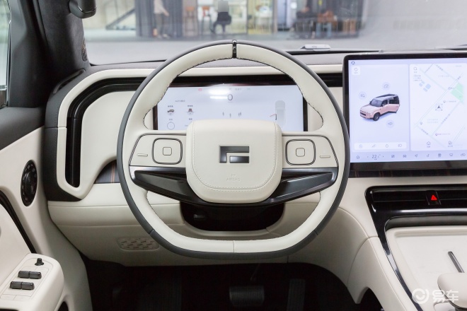 内饰部分,极石ADAMAS延续家族式设计布局,15.7英寸悬浮中控屏与12.3英寸液晶仪表形成双屏组合。方向盘造型经过细微调整,搭配全新内饰配色。