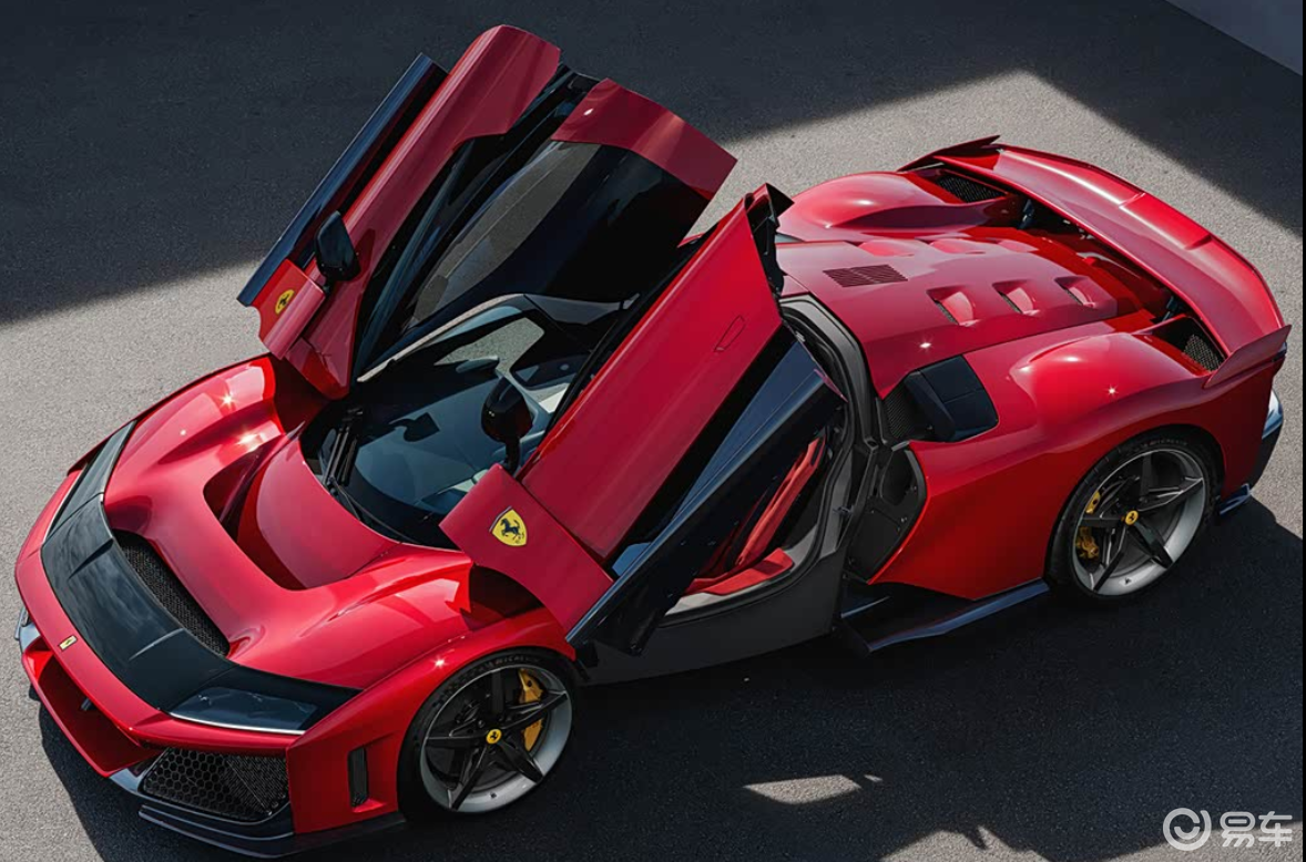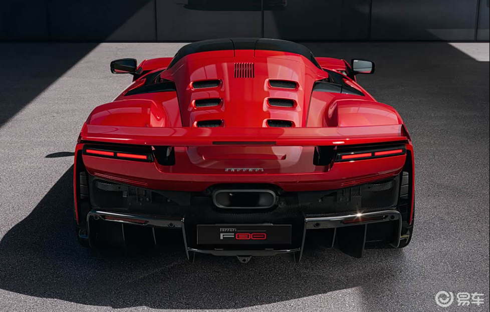 从官图观察,法拉利F80有着极致机械感和运动感,造型夸张充满激情,基本不太考虑舒适性和空间,完全向着性能和操控妥协。新车有一个造型复杂又激情洋溢的引擎舱,前脸压得很低,在引擎舱和前脸中间是一条熏黑横幅,大幅度增强了视觉侵略性,车灯采用分体式设计,日间行车灯为横杠短促线段,非常有设计感。前包围造型复杂,巨大进气口和各种空气动力学套件采用了夸张的艺术表达。新车还采用了S型空气导流,可以根据下压力的变化自动调节前格栅的开关。